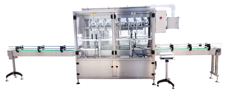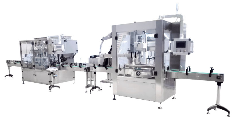 Linear Lubricating Oil Servo Rotor Pump Filling and Moving Head Capping Machines Production Line including following machines: