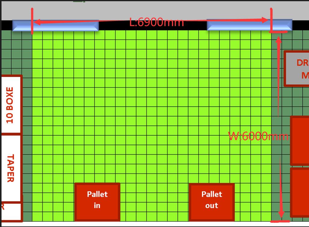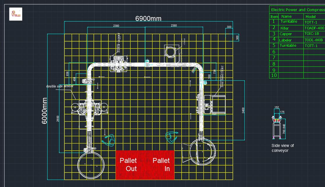 Room limit for filling line:(client’s room layout,Space limit: length - 6900 mm width - 6000 mm, room height is 2600 mm)