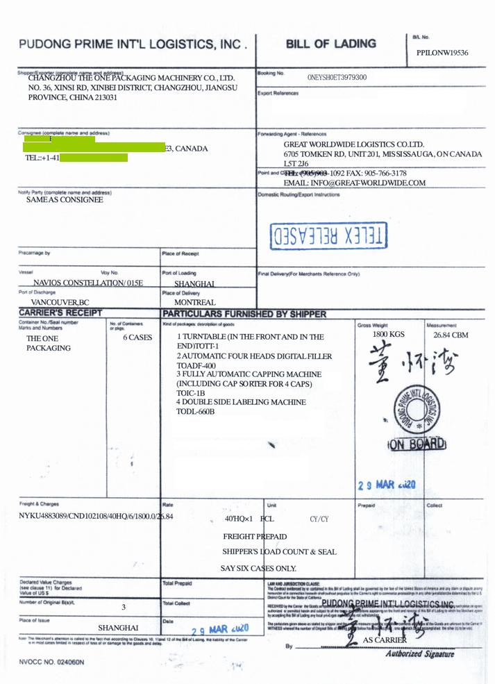 sales@theonepackaging.comProject(shipped on 2020-3-29): U-shaped Fuel Treatment & Lubricants Filling Capping Labeling Machine Production Line