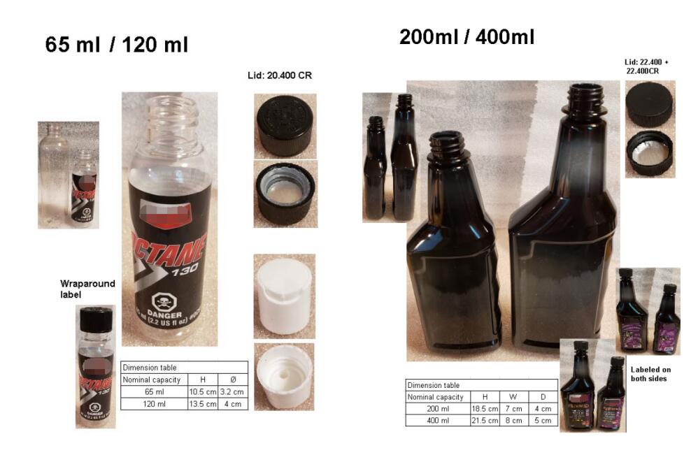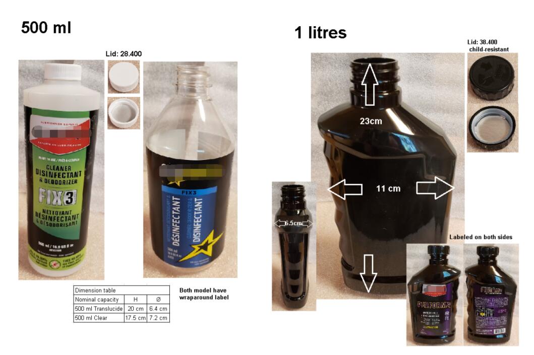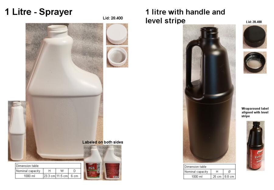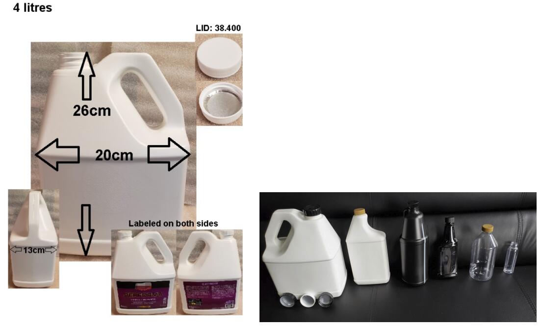 2. Bottle type: different sizes plastic round & square bottles: 65ml - 4000ml (see below drawings & photo)