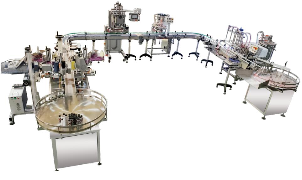 1. This production line adopts servo motor control gear pump filling and servo caps screwing system. Humanized operation and high filling accuracy. Filling nozzles can be customized.